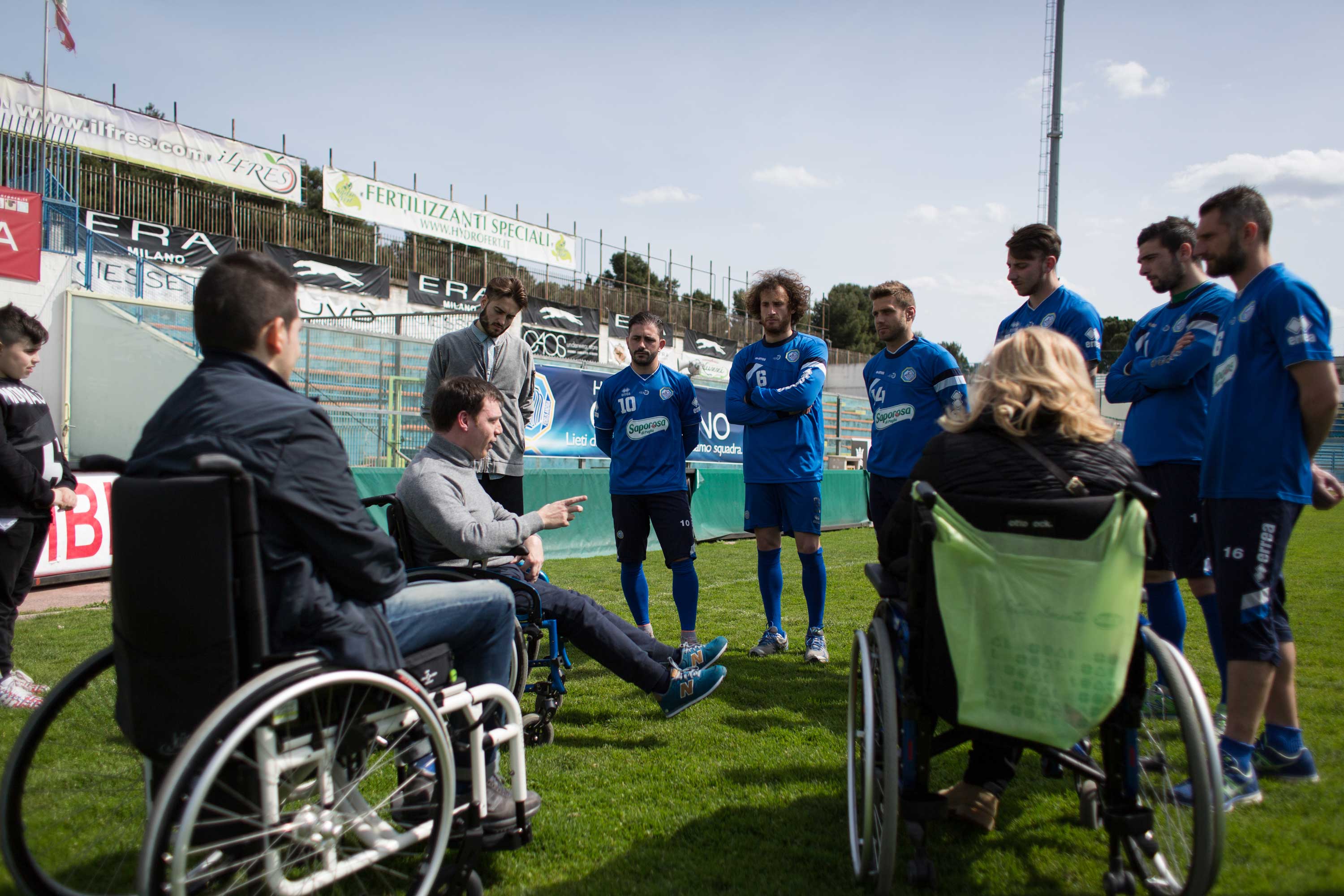 Il primo segnale concreto, in tal senso, è stato mostrato il 27 aprile 2016: alcuni esponenti della Fidelis Andria, capeggiati dal Pres. Paolo Montemurro hanno donato delle carrozzine particolari che consentono l’ingresso in acqua ai diversamente abili. Durante la serata-evento non sono mancate risate ed intrattenimento, con il diretto coinvolgimento anche di alcuni giocatori.